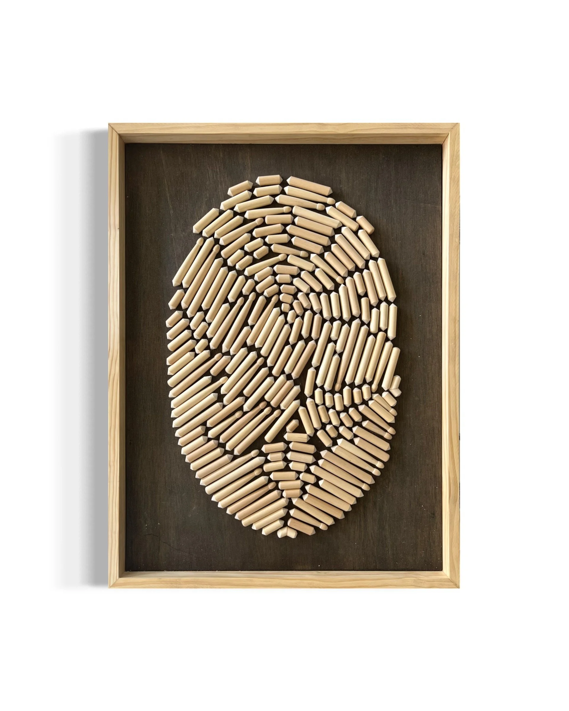 Every musician carries a signature sound—an imprint that belongs to them alone. No one plays like you. No one sounds like you. Constructed from maple drumsticks, this massive thumbprint is a reminder that life is too short to be spent imitating others. You were made to leave your mark. This piece is an invitation to live signature.