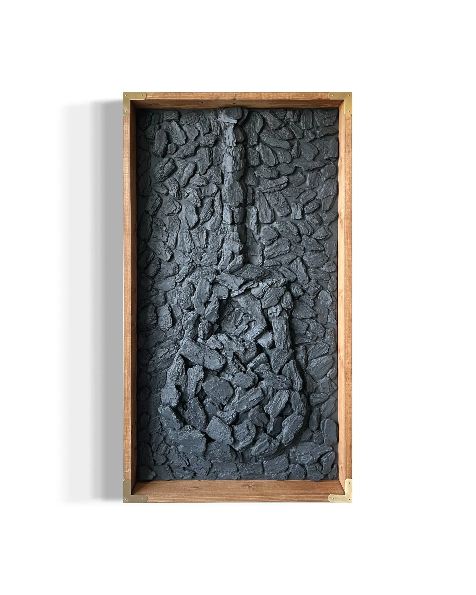 Layered entirely from pine bark, this guitar-shaped piece honors North Carolina’s musical and natural heritage. As a native of the state, I created this work to evoke the feeling of being grounded—rooted in land, history, and home. Weathered and textured, the bark carries a sense of endurance and quiet strength, while its guitar form reminds us that true music grows from the land itself, shaped slowly over time. Inspired by the fragrant Loblolly Pine and North Carolina’s tar-producing history, Pine Tar is a reflection on forests, faith, labor, and the songs that rise from a place deeply woven into memory and identity.